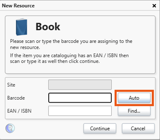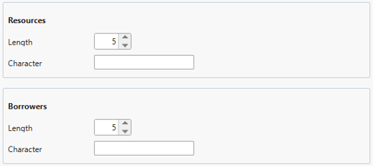 Covers: Automatic Borrower and Resource barcode settings