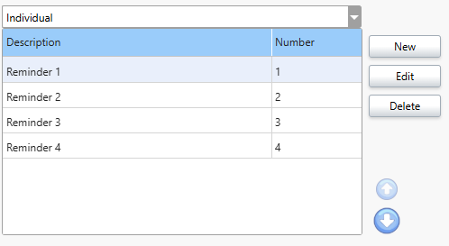 The reminders are listed on the screen in the order that will be sent. To alter this order, click to highlight a reminder record in the list.
