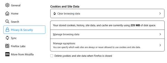 - Under 'Cookies and Site Data' select 'Clear Browsing Data...'.