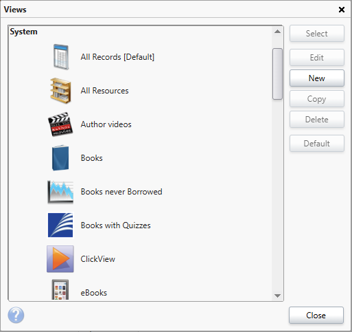 Note that certain views under the System and OPAC headings cannot be edited, when selecting one of these views, the 'Edit' option will be greyed out.