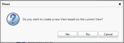 To start creating a new view, click 'New' from the selection of buttons on the right hand side. A prompt will display asking if the new view should be based on the existing one. This can be helpful as a starting point as it will copy the format of the existing view, if this is preferred click 'Yes'. However, in some cases it may be preferable to start from scratch, in which case click 'No'.