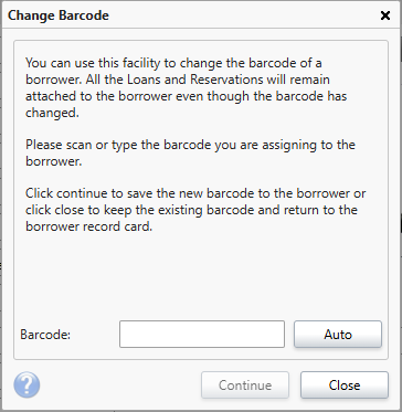 You can alter the barcode of a resource or borrower if they have been assigned the wrong barcode or the formatting is not correct.
